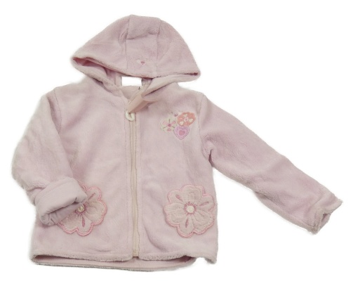 • Nové - svetloružová plyšová podšitá bunda s kvetmi a srdiečkami a kapucňou Baby town