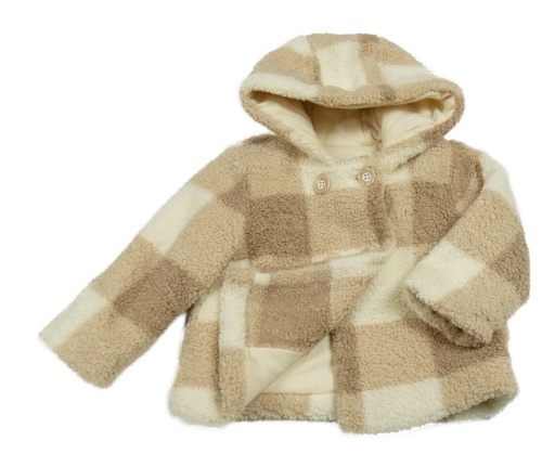 Hnedo-krémová kockovaná huňatá zateplená bunda s kapucňou Nutmeg