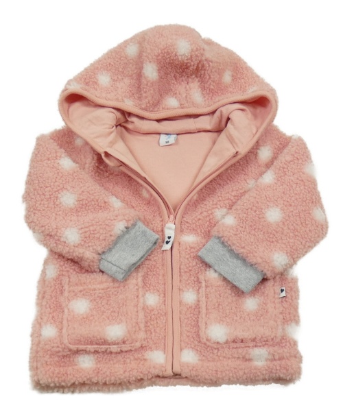 Ružovo-bielo-sivá bodkovaná á huňatá podšitá bunda s kapucňou Topomini