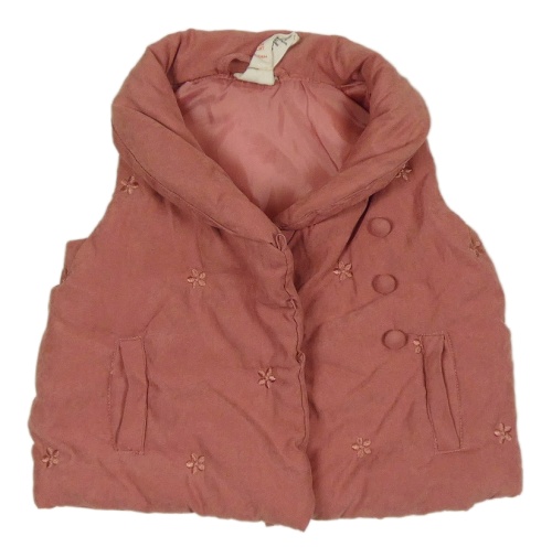Staroružová šušťáková zateplená vesta s výšivkami květin