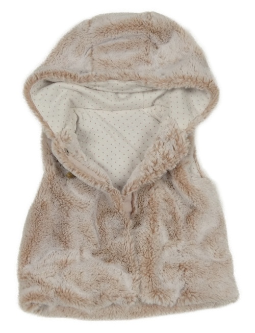 Bielo-ružová kožušinová zateplená vesta s kapucňou Nutmeg