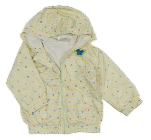 • Bielo-žlto-mátová pruhovaná šušťáková jarná bunda s motýly a kapucňou Ergee