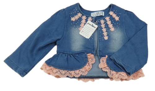 Nové - Modrý rifľový cardigan s kvietkami a čipkou