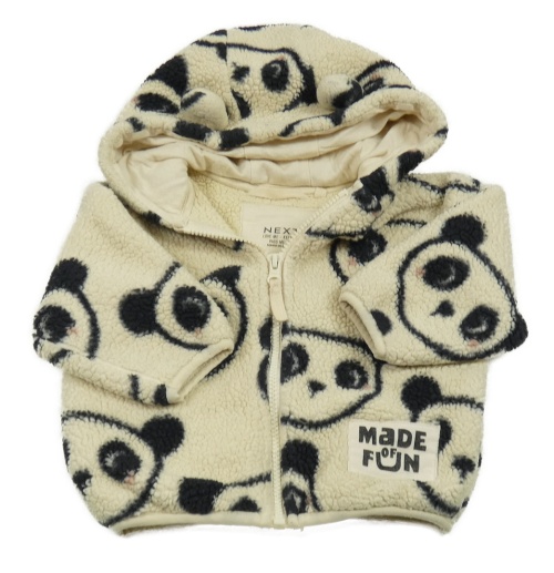 Smotanová huňatá zateplená bunda s pandami a kapucňou Next