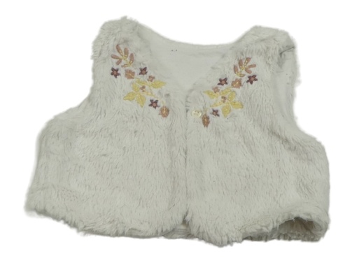 Biela chlpatá podšitá vesta s kvietkami