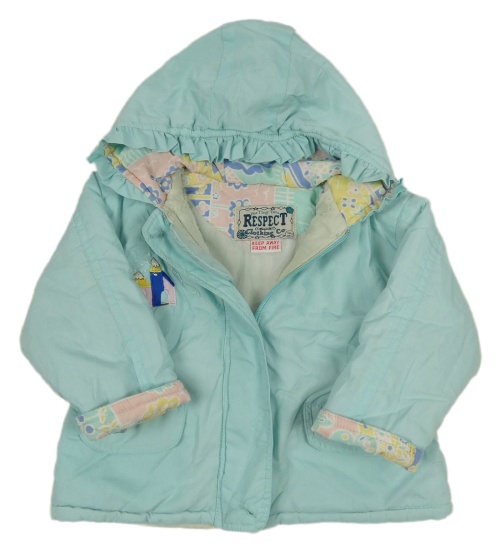 Svetlomodrá šušťáková zateplená bunda s domečkem a kapucňou