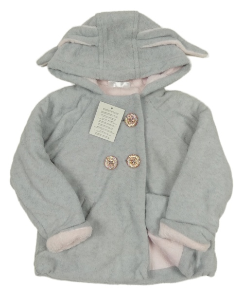 Nové - Sivý fleecový zateplený kabát s kapucňou s uškami Ergee