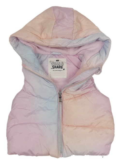 Ružovo-lila-modrá batikovaná šušťáková zateplená vesta s kapucňou F&F