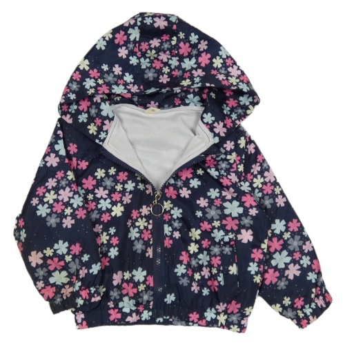Tmavomodrá kvetovaná šušťáková jesenná bunda s kapucňou