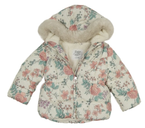 Smotanová kvetovaná šušťáková zimná bunda s kapucňou F&F
