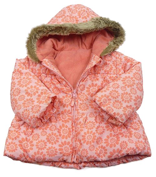 • Svetloružová -korálová kvetovaná šušťáková zimná bunda s kapucňou s kožešinou M&S