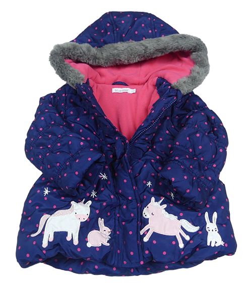 • Tmavomodrá bodkovaná á šušťáková zimná bunda so zvieratkami a kapucňou Bluezoo
