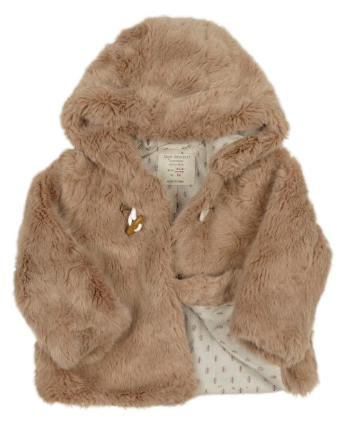Béžový kožešinový podšitý kabátek s kapucňou Zara