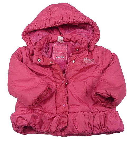 Malinová šušťáková zimná bunda s nápisom a kapucňou C&A