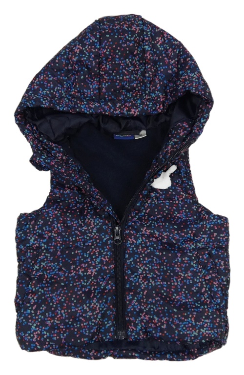 Tmavomodrá šušťáková zateplená vesta s bodkami a kapucňou Lupilu