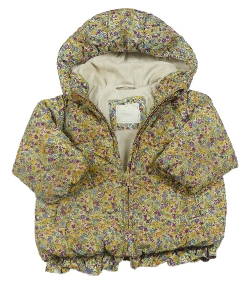Smotanová kvietkovana prešívaná šušťáková zimná bunda s volánikom a kapucňou Next