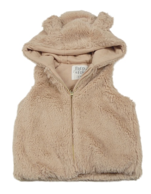 Pudrová kožušinová zateplená vesta s kapucňou s uškami F&F