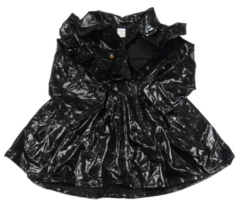 Nové - čierny ľahký lesklý šušťákový kabát s volánikom shein