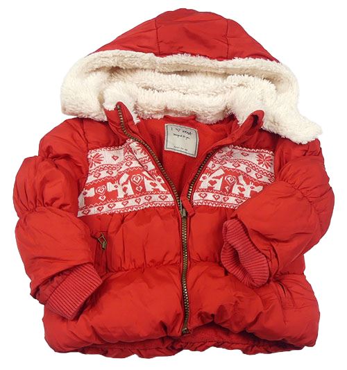 Červeno-biela vzorovaná šušťáková zimná bunda s kapucňou Next