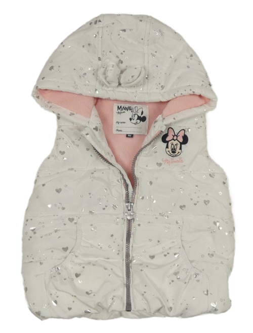 Biela šušťáková zateplená vesta so srdíčky, Minnie a kapucňou Disney