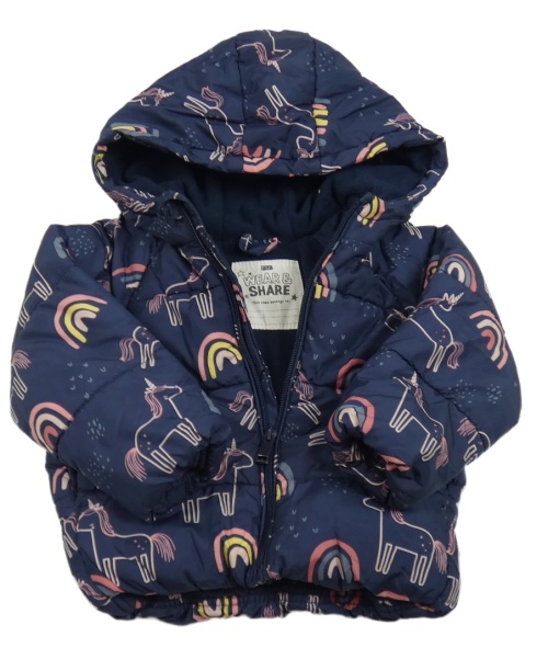 Tmavomodrá šušťáková zimná bunda s jednorožcami a kapucňou F&F