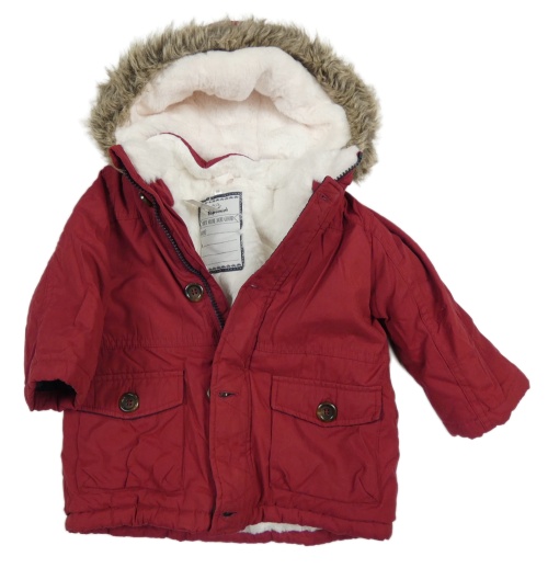 Nové - Malinová šušťáková zimná bunda s kapucňou s kožešinou Topolino