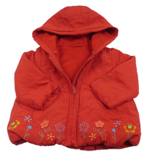 Červená šušťáková zateplená bunda s kvietkami a kapucňou Mothercare