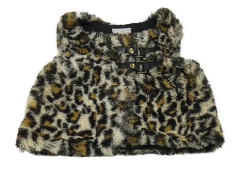 Béžovo-čierna leopardí kožušinová podšitá vesta