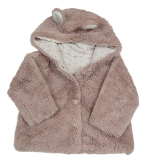 Svetloružová chlpatá podšitá bunda s kapucňou Next