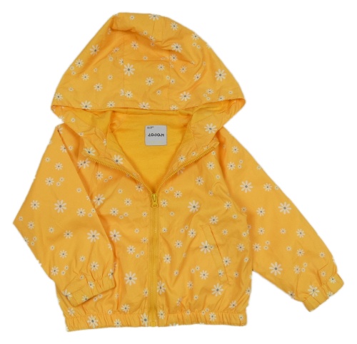 Žltá šušťáková jarná bunda s kvietkami a kapucňou Losan