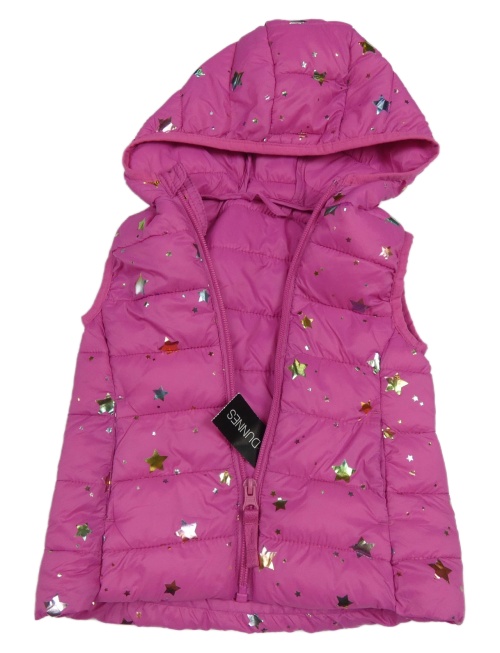 • Nové - tmavoružová prešívaná šušťáková zateplená vesta so zlatými hviezdičkami a kapucňou St. Bernard