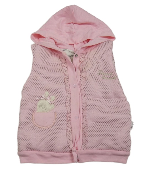 Ružová bodkovaná á zateplená vesta s králikom a kapucňou