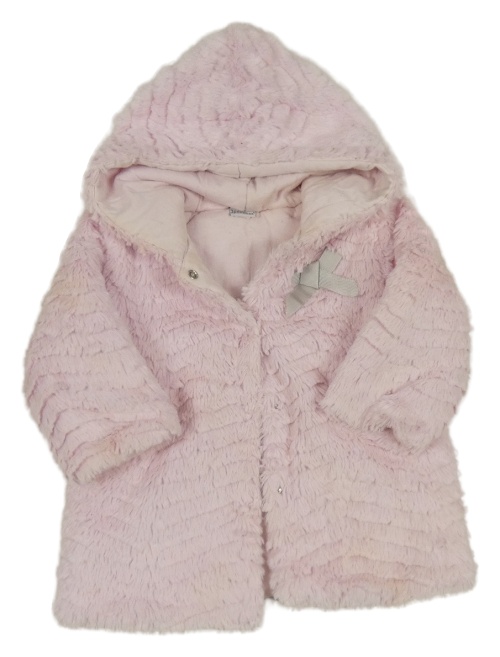 Ružová kožušinová zateplená bunda s mašlou a kapucňou