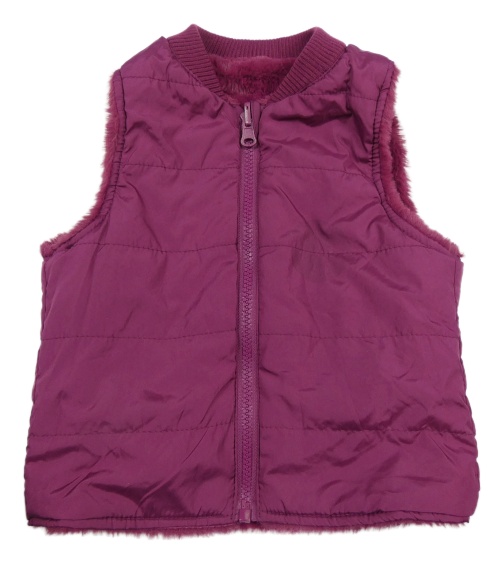 Vínová šusťákovo/kožešinová obojstranná zateplená vesta