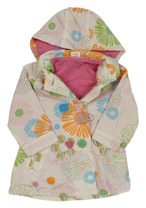 Svetloružový kvetovaný šušťákový jarný kabát s kapucňou MiniMode