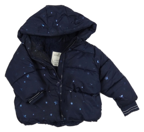 • Tmavomodrá prešívaná šušťáková zimná bunda s hviezdičkami a kapucňou Matalan
