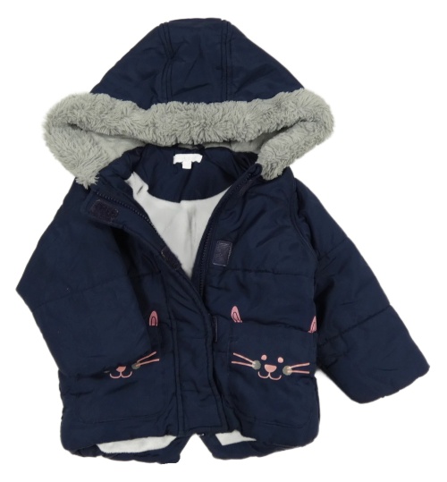 • Tmavomodrá šušťáková zimná parka s kočičkami a kapucňou s kožešinou Bluezoo