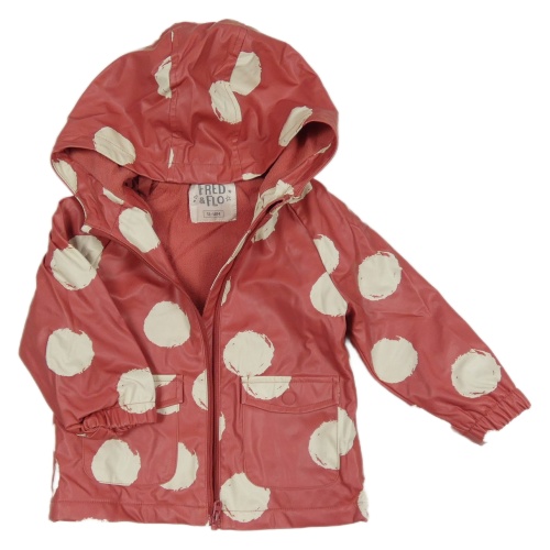 Jahodovo-biela bodkovaná á nepromokavá jarná bunda s kapucňou F&F