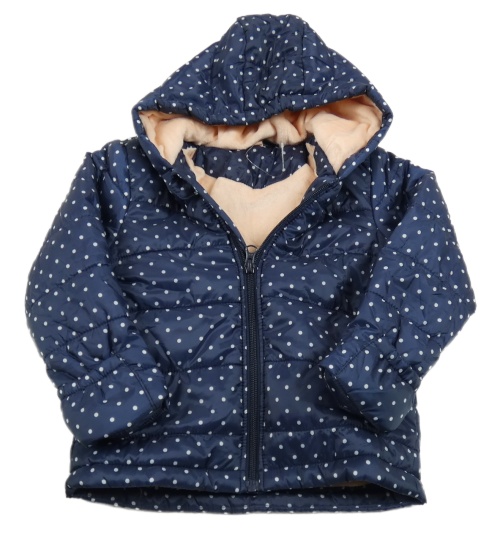 Nové - Tmavomodrá bodkovaná šušťáková zimná bunda s kapucňou Lupilu