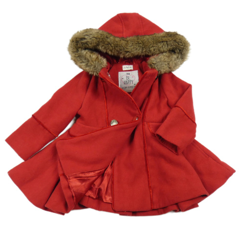 Červený flaušový podšitý kabát s kapucňou F&F