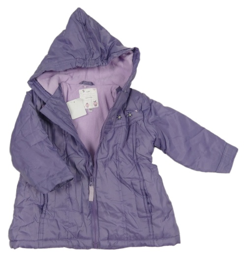 Nové - Fialová šušťáková zimná bunda s kvetmi a kapucňou