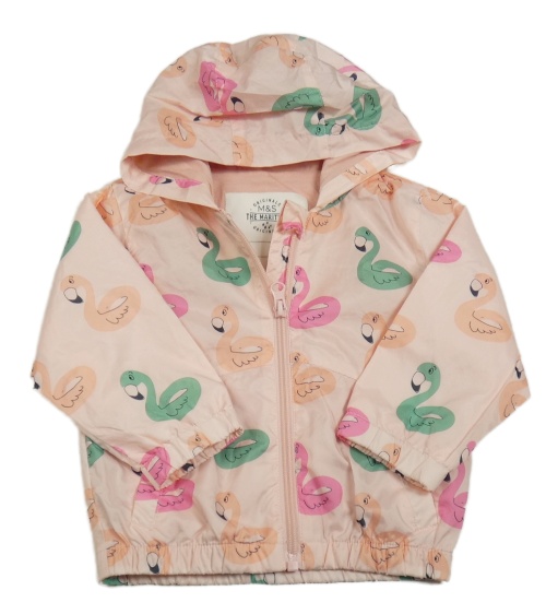 Svetloružová šušťáková jarná bunda s plameňáky a kapucňou M&S