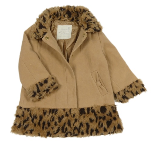 • Béžový flaušový podšitý kabát so vzorovanou kožešinou a golierikom Matalan