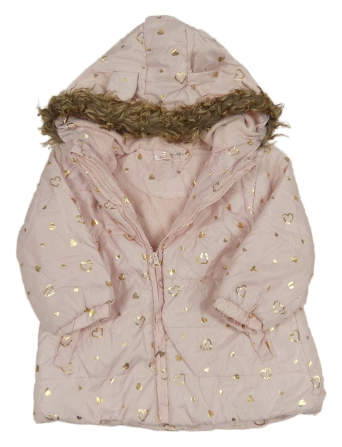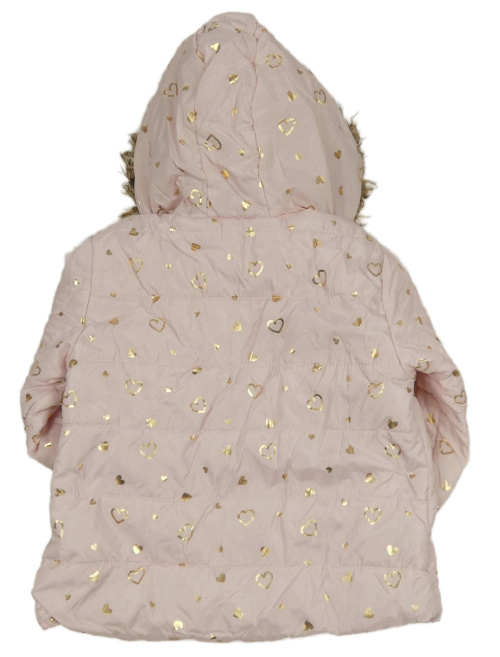 • Svetloružová šušťáková zateplená bunda so zlatými srdiečkami a kapucňou Ergee
