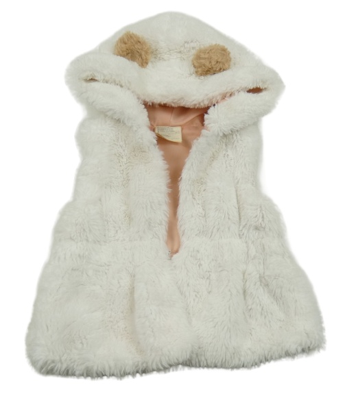 Biela kožušinová podšitá vesta s kapucňou