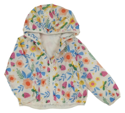Biela šušťáková jarná bunda s kvietkami a kapucňou E-vie