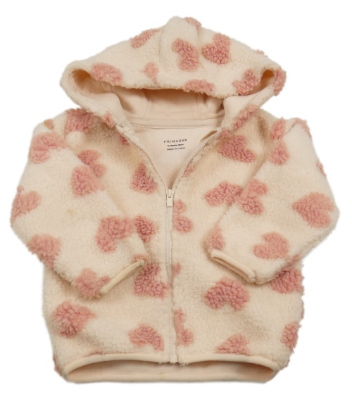 Svetloružová huňatá bunda so srdiečkami a kapucňou Primark