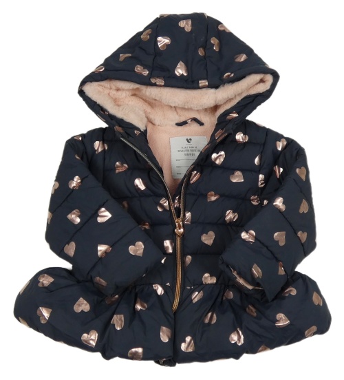 Tmavomodrá šušťáková zimná bunda so srdiečkami a kapucňou V by Very