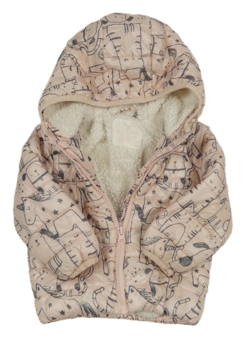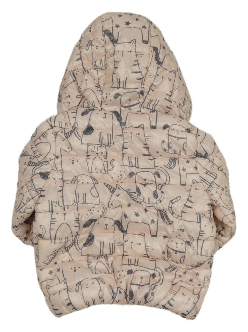 Svetloružová šušťáková zimná bunda so zvieratkami s kapucňou F&F