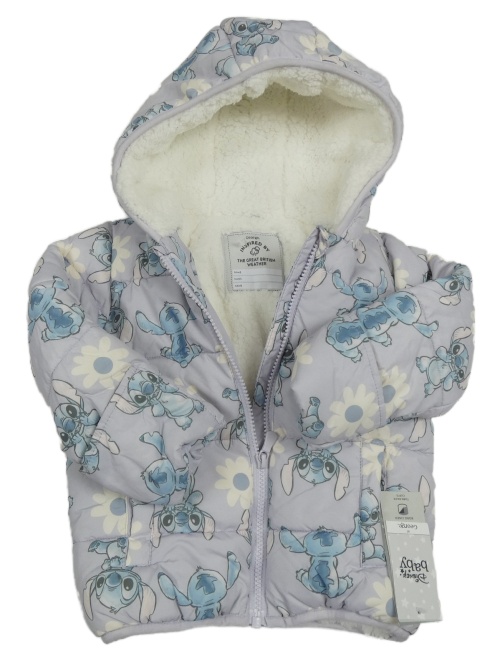Nové - Svetlofialová šušťáková zimná bunda so Stitchem a kapucňou George